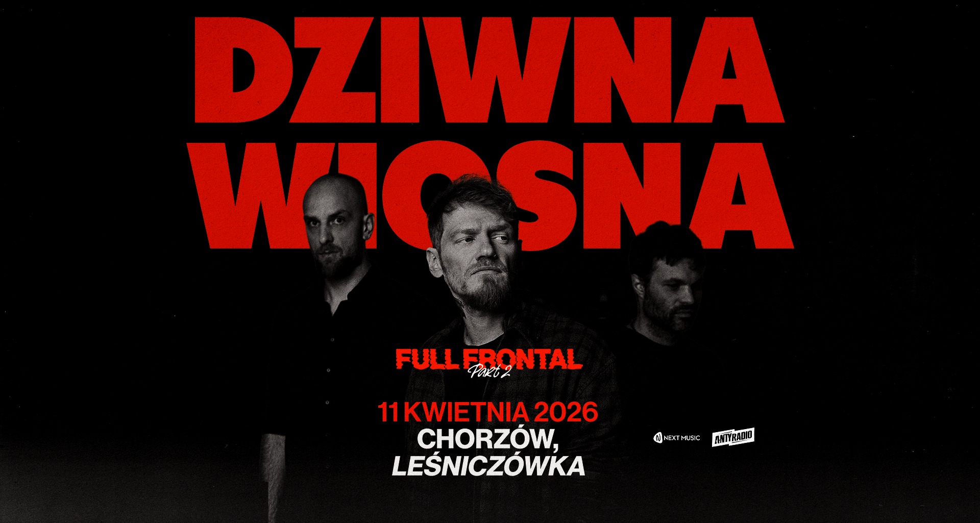 Kosmonauci rockandrolla ruszają w trasę FULL FRONTAL part 1. Zagrają takie rzeczy, że padniecie. Będą złote przeboje z debiutanckiej, nominowanej do Fryderyka „Dziwnej Wiosny”, będą współczesne klasyki z płyty „DUCHY.DISCO”. Będą nigdy przez nikogo nie słyszane numery ze zbliżającej się płyty numer trzy „PLOT TWIST”. I będzie coś, co nie mieści się w uszach. SUPERHUMAN LIKE BRANDO!